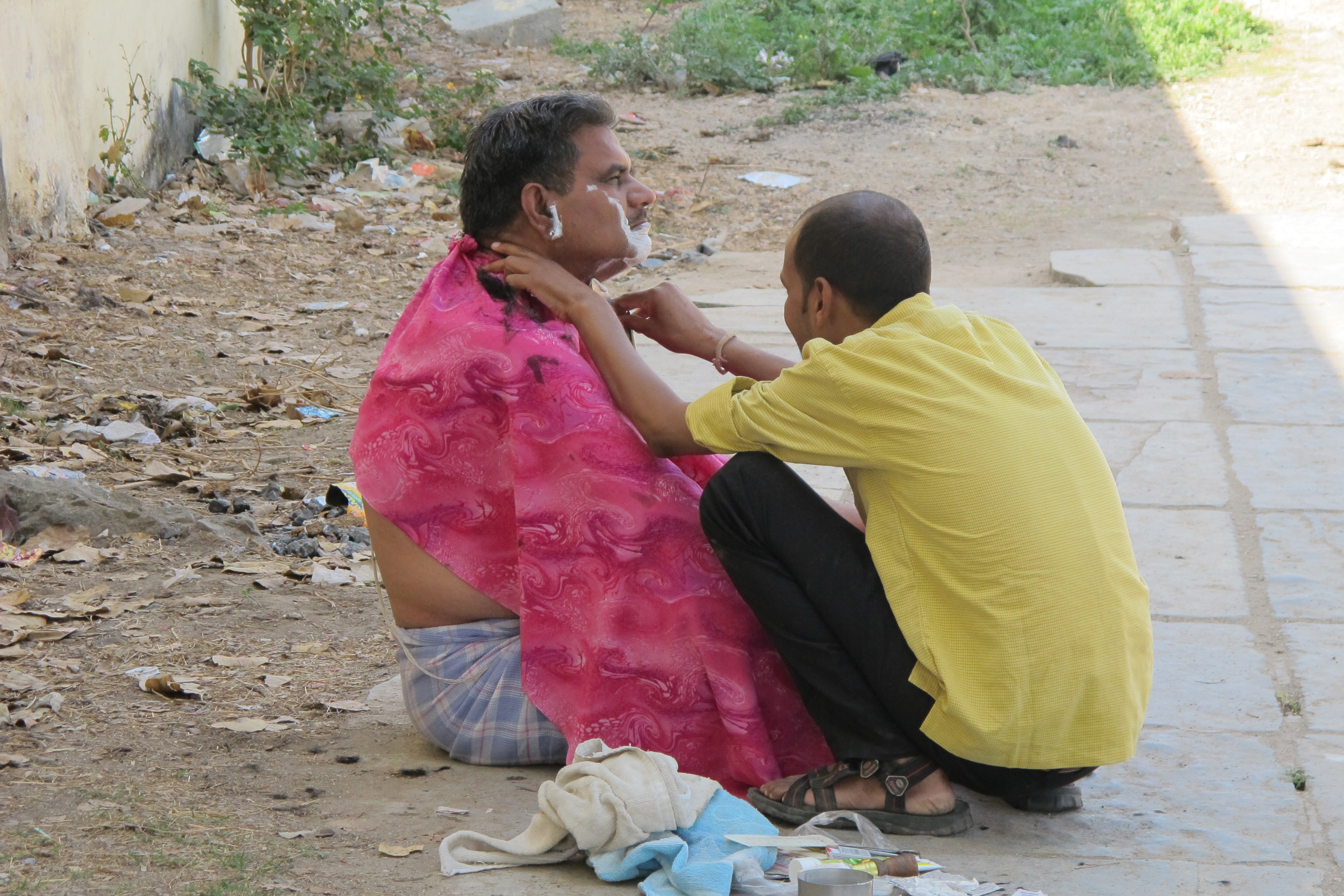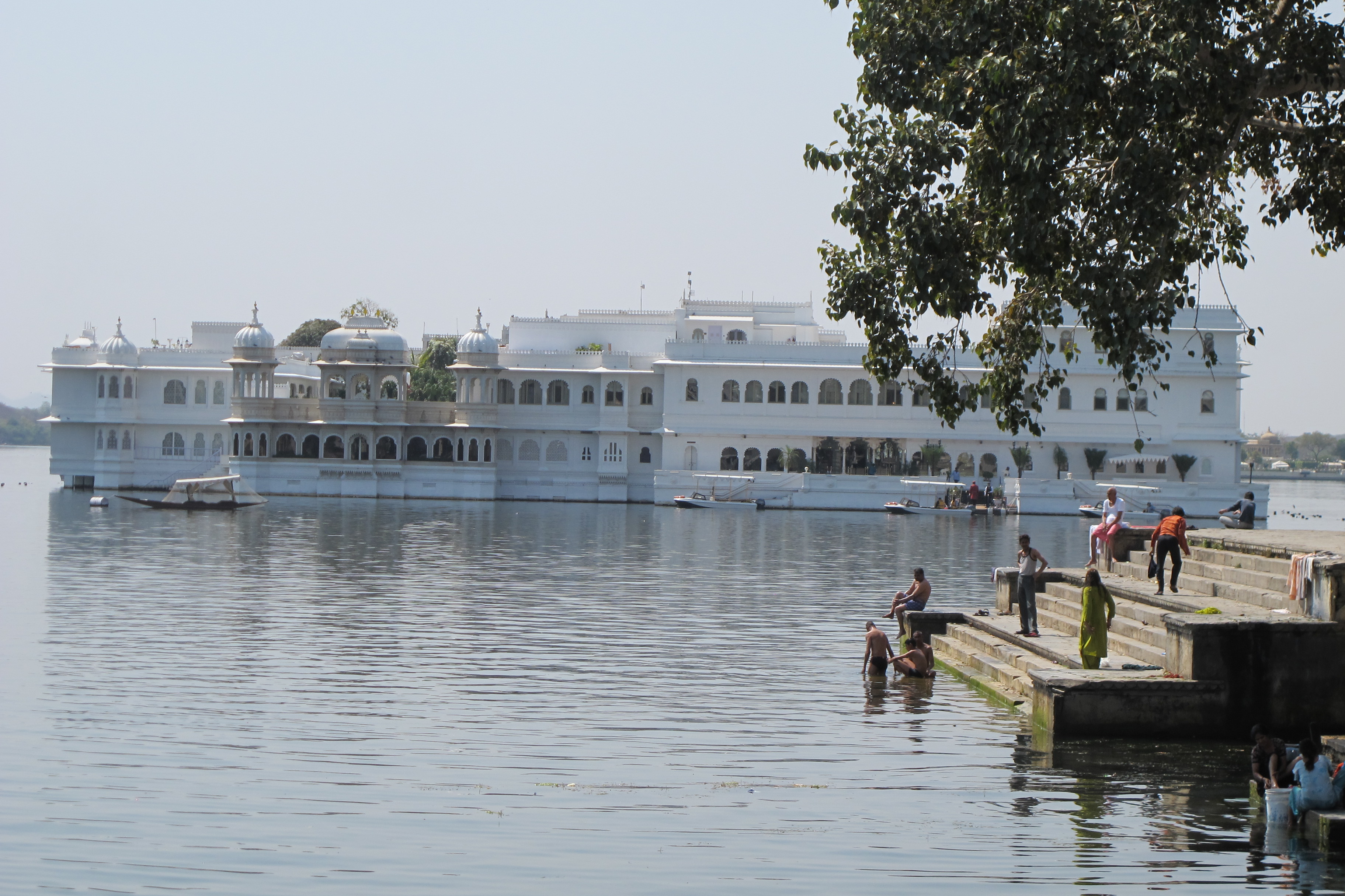 Next morning we slept in until 9.15 and didn’t get going until 10.30 am … late for us. Ashok drove us through the narrow streets of Udaipur down to the lake. We were in an area that no tourist bus could ever get down. We watched the women beating their clothes down by the lake and washing themselves. There were some men there that had shaved their heads and were praying with a priest. Ashok told us that a relative of theirs had died and they were preparing for his cremation. They were in singlets and sarongs that he said would be thrown away after the cremation. It was all very interesting to watch … the real deal and they were very friendly. Very authentic India. It was overlooking the palace in the middle of the lake … very beautiful.