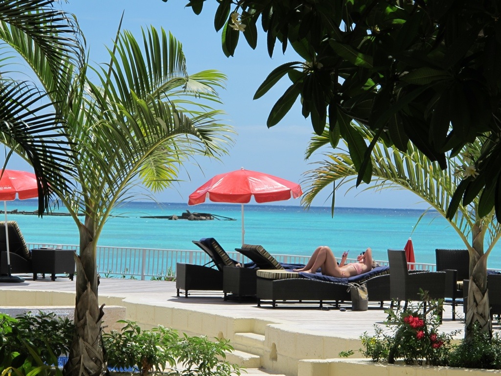 The view from the hotel … that is me lying on the deckchair … Ha! (not!)