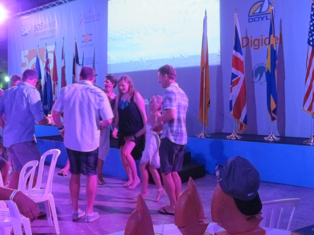 The Germans came in at 1,2,3 but Sandy Higgins and Paul Marsh from Australia had a great regatta and came in 5th. They both had their wives and lovely children here … all really lovely people who had an absolute ball in Barbados. This is a photo of them dancing together!