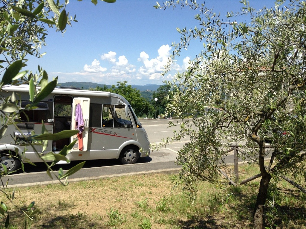Then we headed to a non description town near a motorhome dealer as we needed a new leisure battery. Managed that the next day, then headed into the Tuscan hills just driving around. Stopped up in a town called Donino. We wandered further up into the hills by foot and came across a gorgeous hotel up on its own in the countryside. Went in and enquired about prices … It was so cheap 85 euro for room and breakfast and it was divine. It was called Hotel Panitino and was an old convent. If ever you are in Tuscany give it a go.