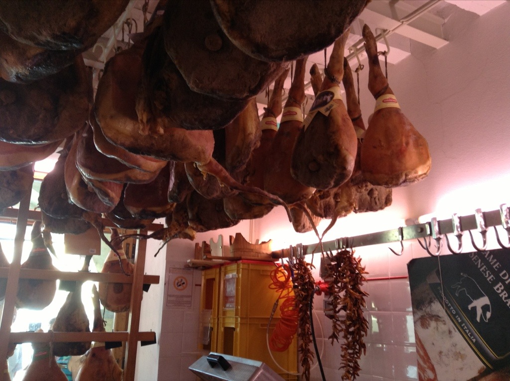 This is a fabulous butcher shop in Greve … It has been stated that it is the best butcher shop in Italy. It was great… Note the tails still attached to the meat … Yum!