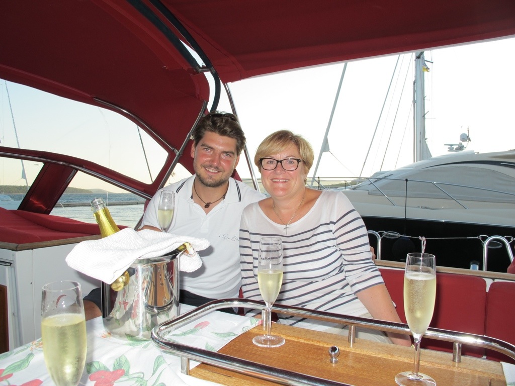 We arrived at the Seget Donji Marina where Mon Cheri is moored. Fabulous marina with a “Yacht Club” complex, which included a pool. Mon Cheri was all locked up so we had lunch at the yacht club and relaxed. Seb’s parents Milan and Minka arrived with our deckhand Gasper, who is the loveliest Slovenian boy. Great to see Milan and Minka. Of course we had to have a drink and a big chat at the yacht club, followed by a glass of champagne on Mon Cheri once Gasper had prepared the boat for us.