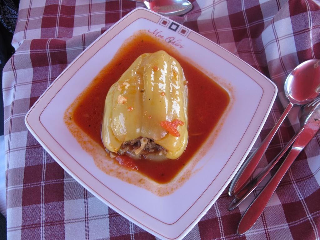 I know I keep posting a lot of photos of food … but it is hard not to be impressed. The peppers were stuffed with mince, rice and mushrooms in a tomato broth. It was light and divine. After lunch it was time for a well earned rest on the back of the deck. Life is tough on Mon Cheri!