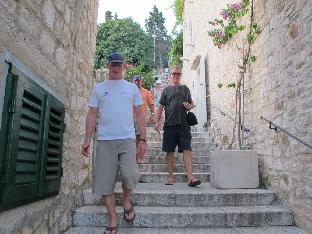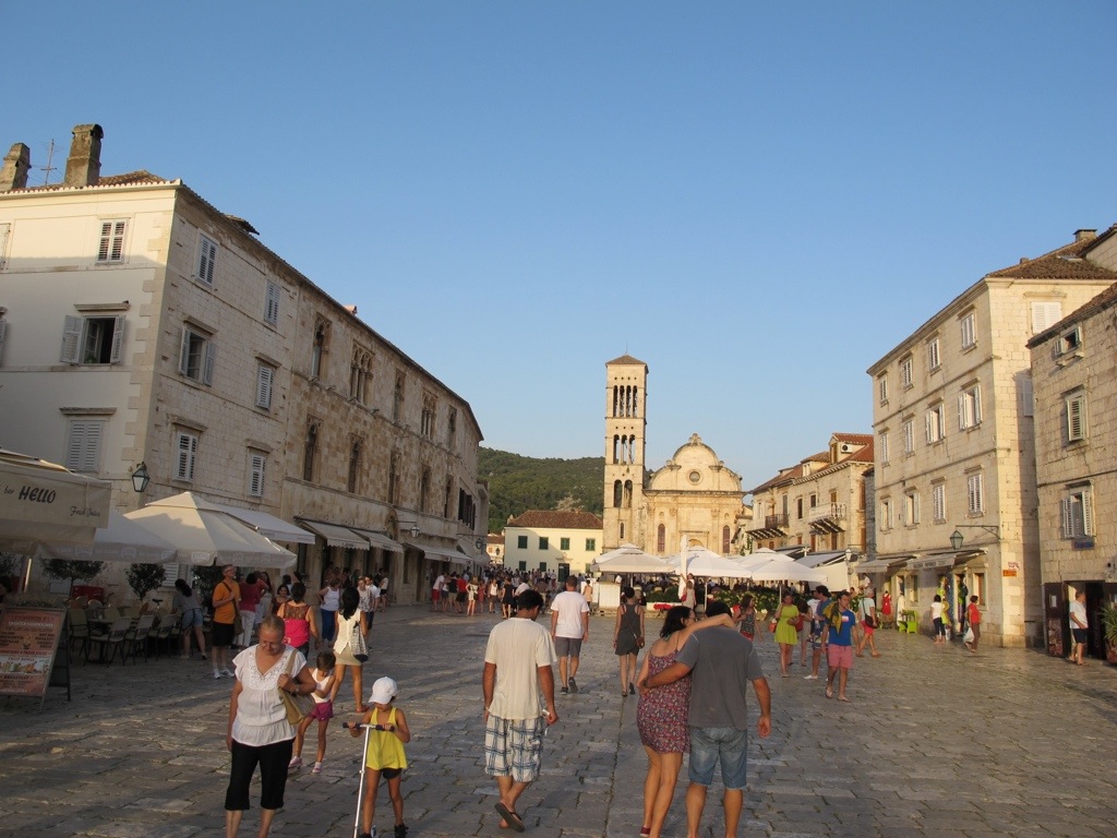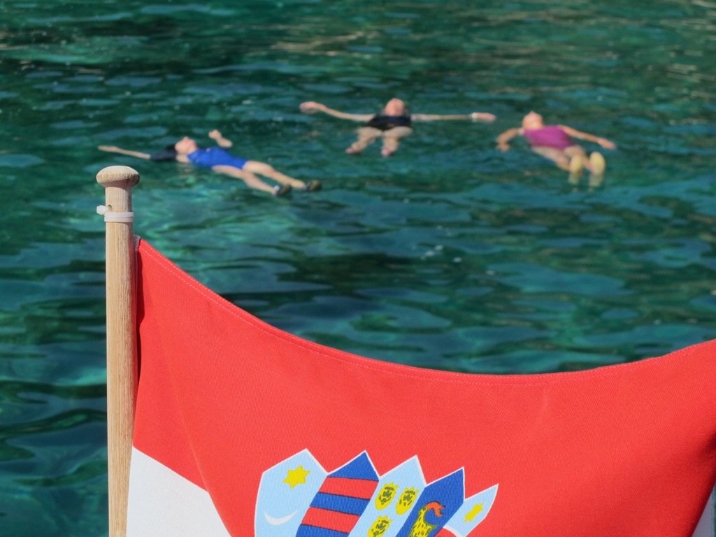 We headed off at 10 am as there was strong wind predicted in the afternoon. We had breakfast on the move and in the afternoon arrived at a lovely bay in Hvar Island. We were on a mooring owned by one of the local restaurants and he came across in his tiny rubber ducky and acted as a tug to push the back of the boat in so that he could grab the rope and wrap it around a bombe. We had a lovely swim … the water was warmer than usual then a great lunch. Followed of course by a little sleep.