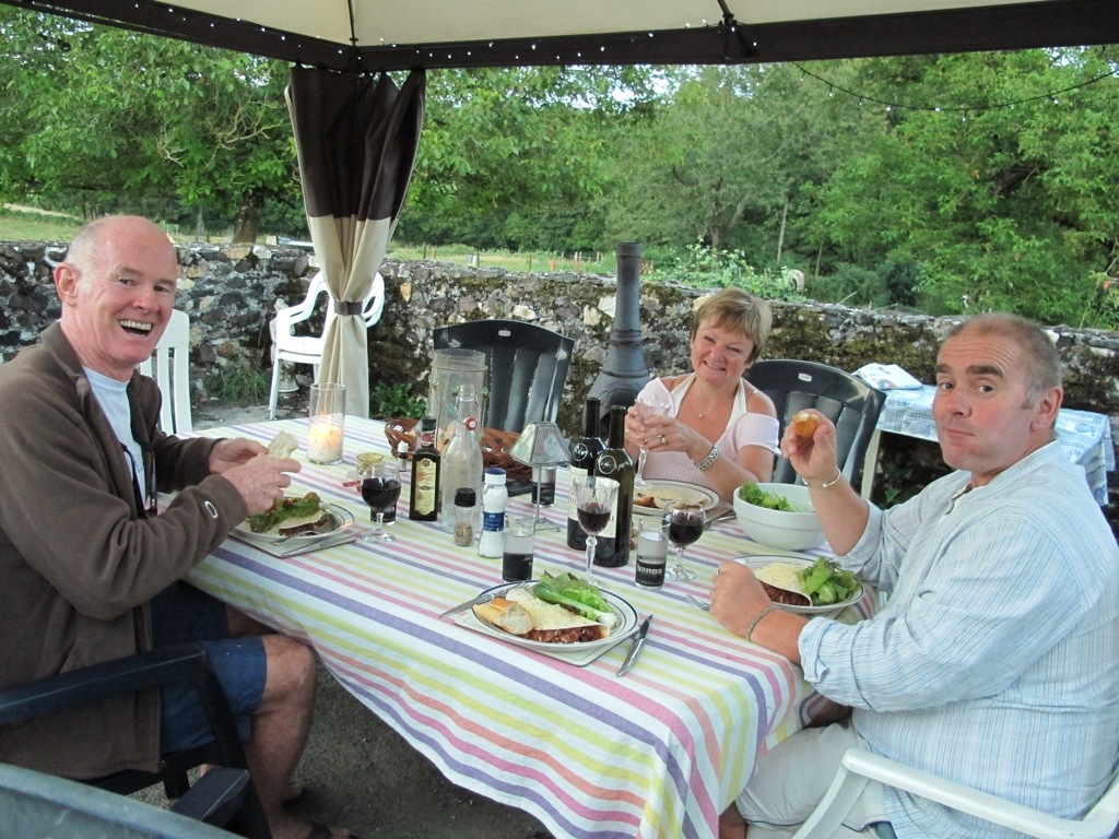 My only other failing was at dinner that night out under a lovely gazebo thingy, Izzy (the one with three legs … has this habit of coming up and giving you a big nudge with her head, can’t blame her as she only has one front leg) anyway, she decided to give me a huge nudge to my right hand which was holding a glass of red wine. The wine and the glass went flying across the table and I looked like a retard. I don’t really know if they believed me that Izzy had done it.