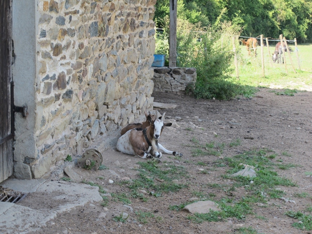 The chickens are fine and there is one duck who hangs around with the goose. They are inseparable. There are two goats, they are fine but a bit fussy … they eat grass but anything else you have to hand feed them.
