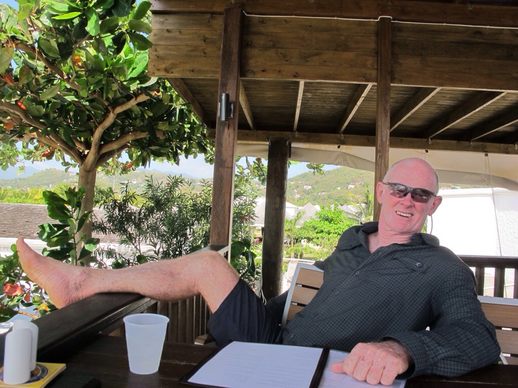 (John doing it tough on the first day on Grenada at Umbrellas!)