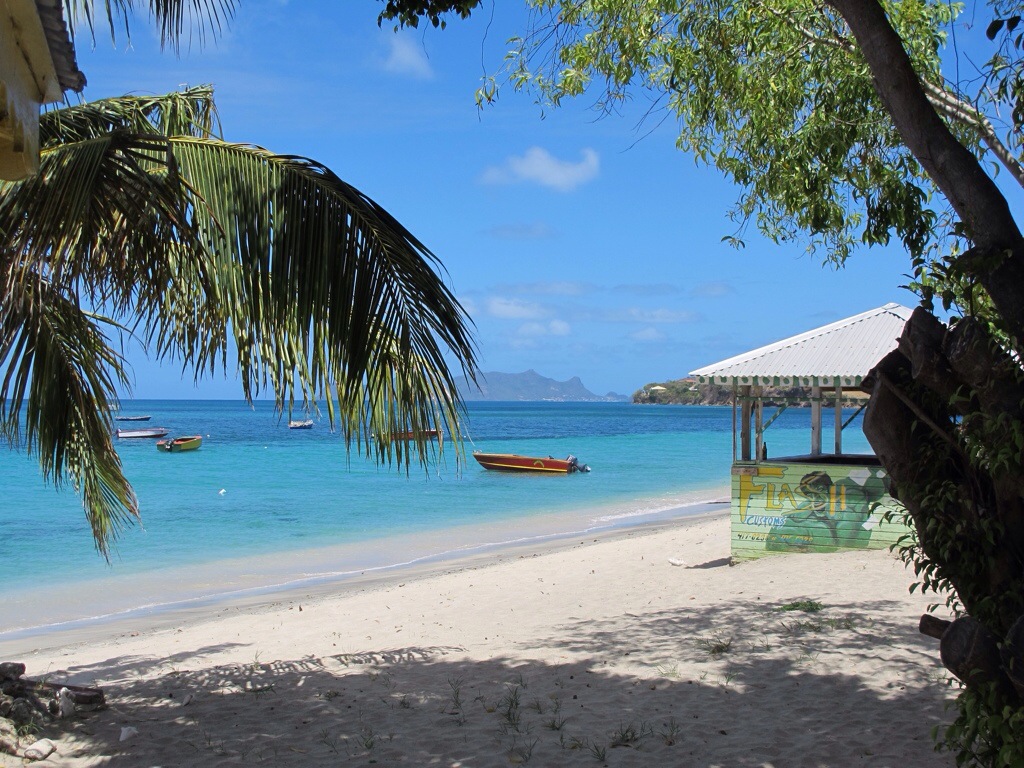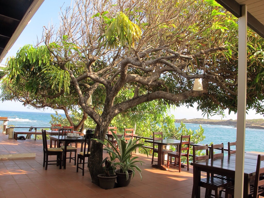 On Grenada we found a fabulous restaurant right on the beach (which was 400 m from our little hotel) called Umbrellas. Great staff, great food, great view. The vegetation along the coast of Grenada is very similar to Bowen … terminalia trees right on the beach.