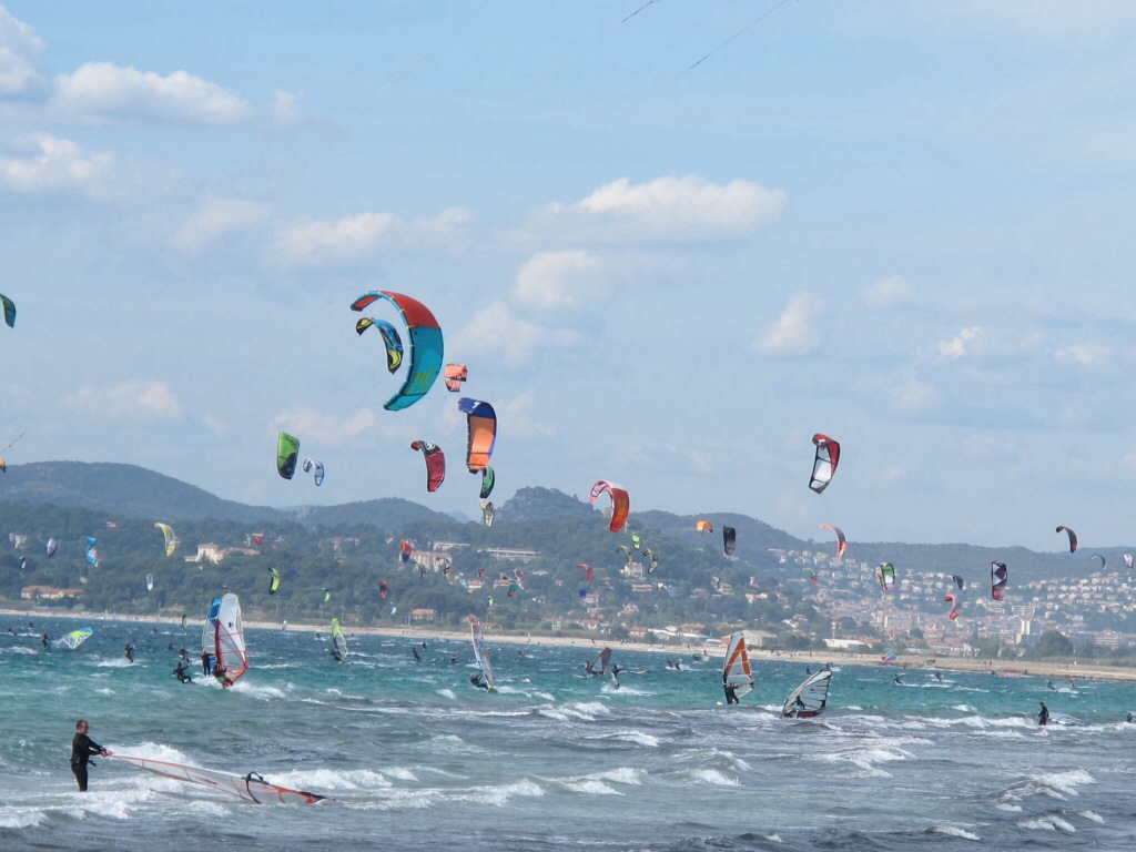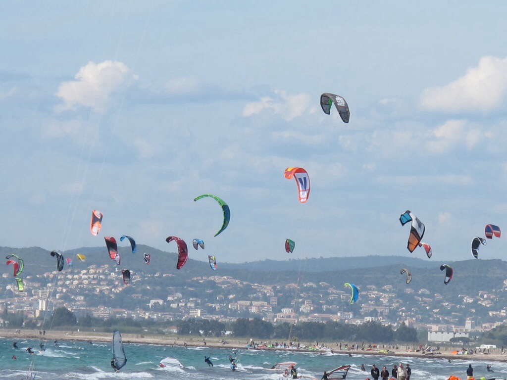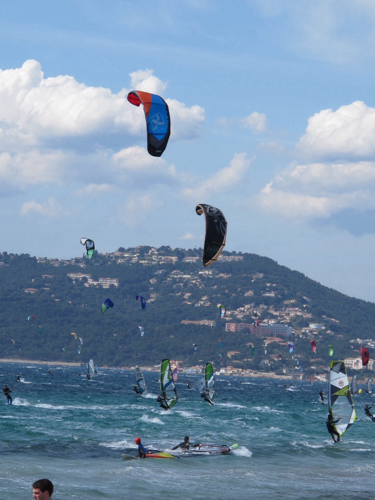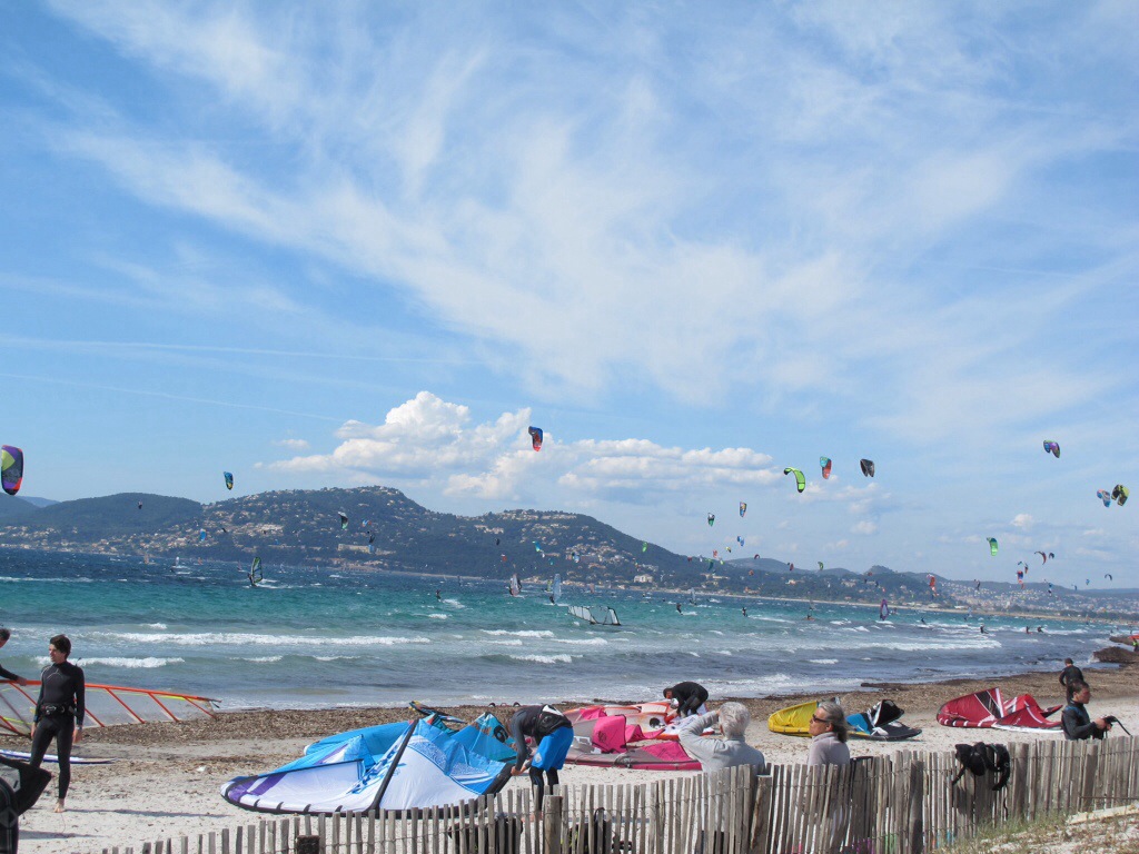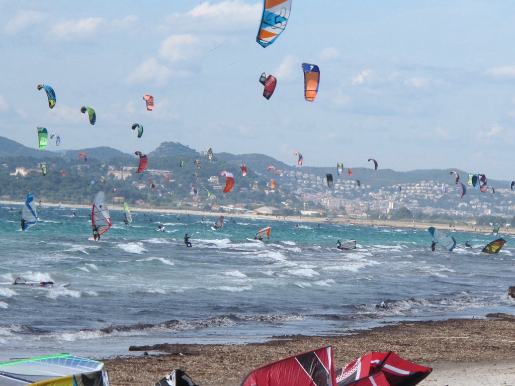 As we left Hyeres late on the Saturday (26) afternoon we came across this huge beach. It was blowing a gale and there must have been somewhere near 1000 windsurfers and kite surfers. I have never seen anything like it in my life. There were as many on the shore as there were in the air.