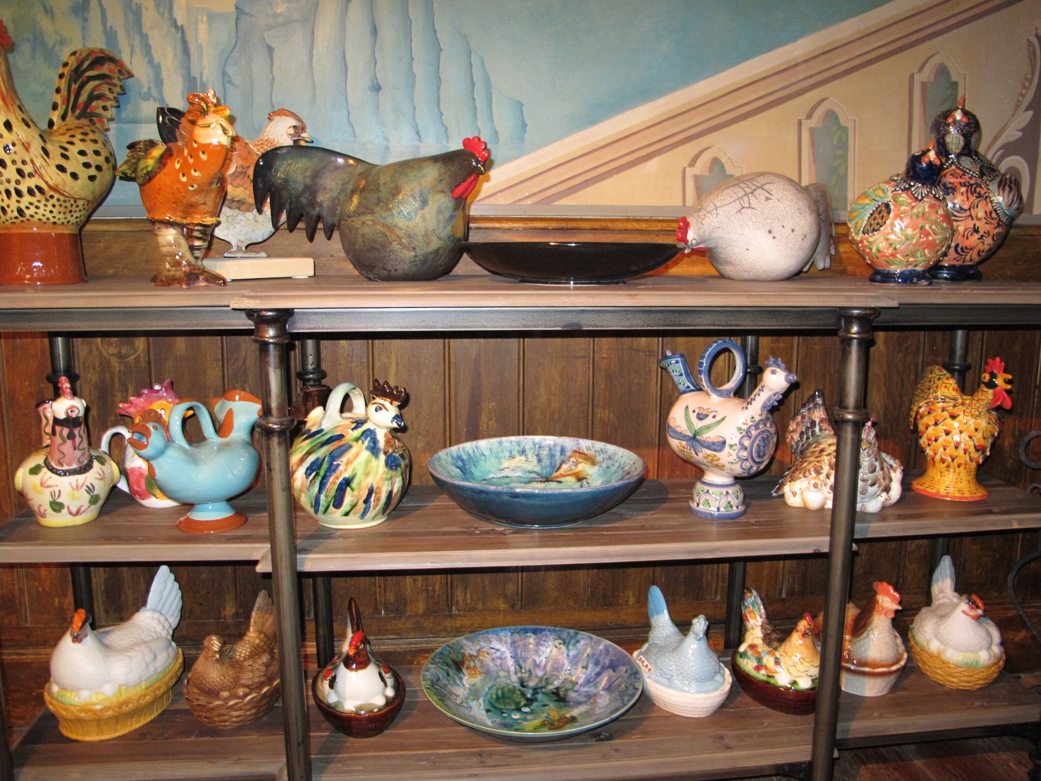 A couple of photos of Dominique’s porcelain chicken collection.