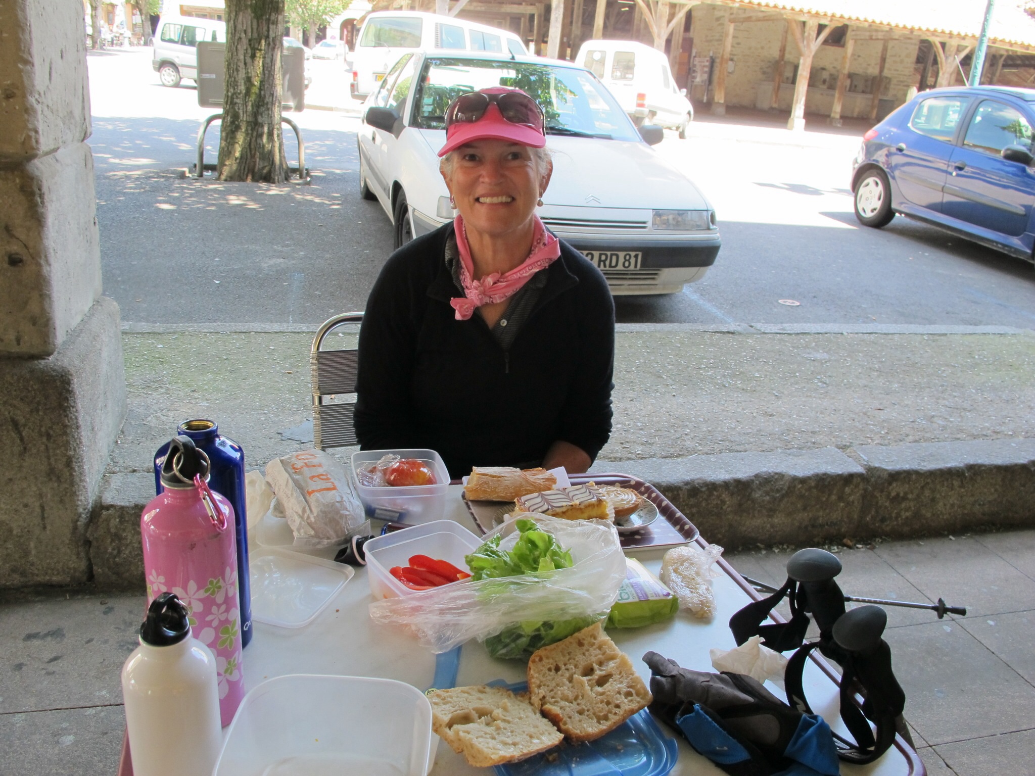 We had a really nice walk this day. Stopped at Soreze for coffee at a sleazy Tabac. Managed to get a stamp in our compestela from the tourist information and walked through the next town … Revel. It had a lovely centre with an old market in the middle of the town