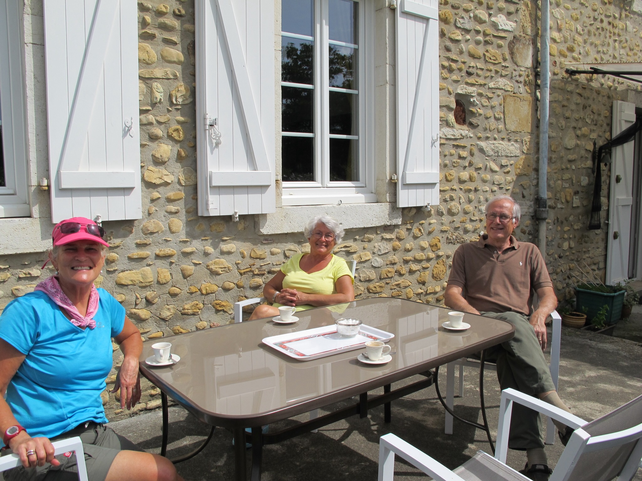 Regine was French but had worked in Great Britain for sometime so had perfect English. They had just come back from a week in Brittany and had the garden furniture packed away, so we helped them pulled it out and we had a lovely hour drinking coffee and chatting to them. They were gorgeous people.