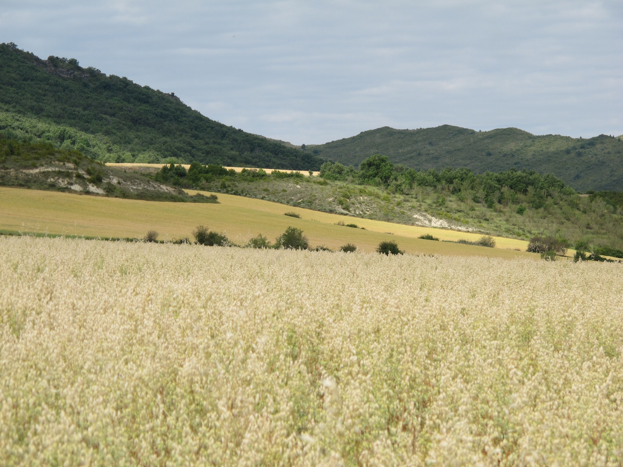 This morning I had breakfast in the cafe next door and then we headed out for the day. I was feeling a lot better. It was a 22 km day. The landscape was through golden wheat and oat fields and some very strange moonscape type eroded hills. We were really in no mans land. Once again Bruce managed to find us and we had lunch and a nap in the van. Wonderfully refreshing!
