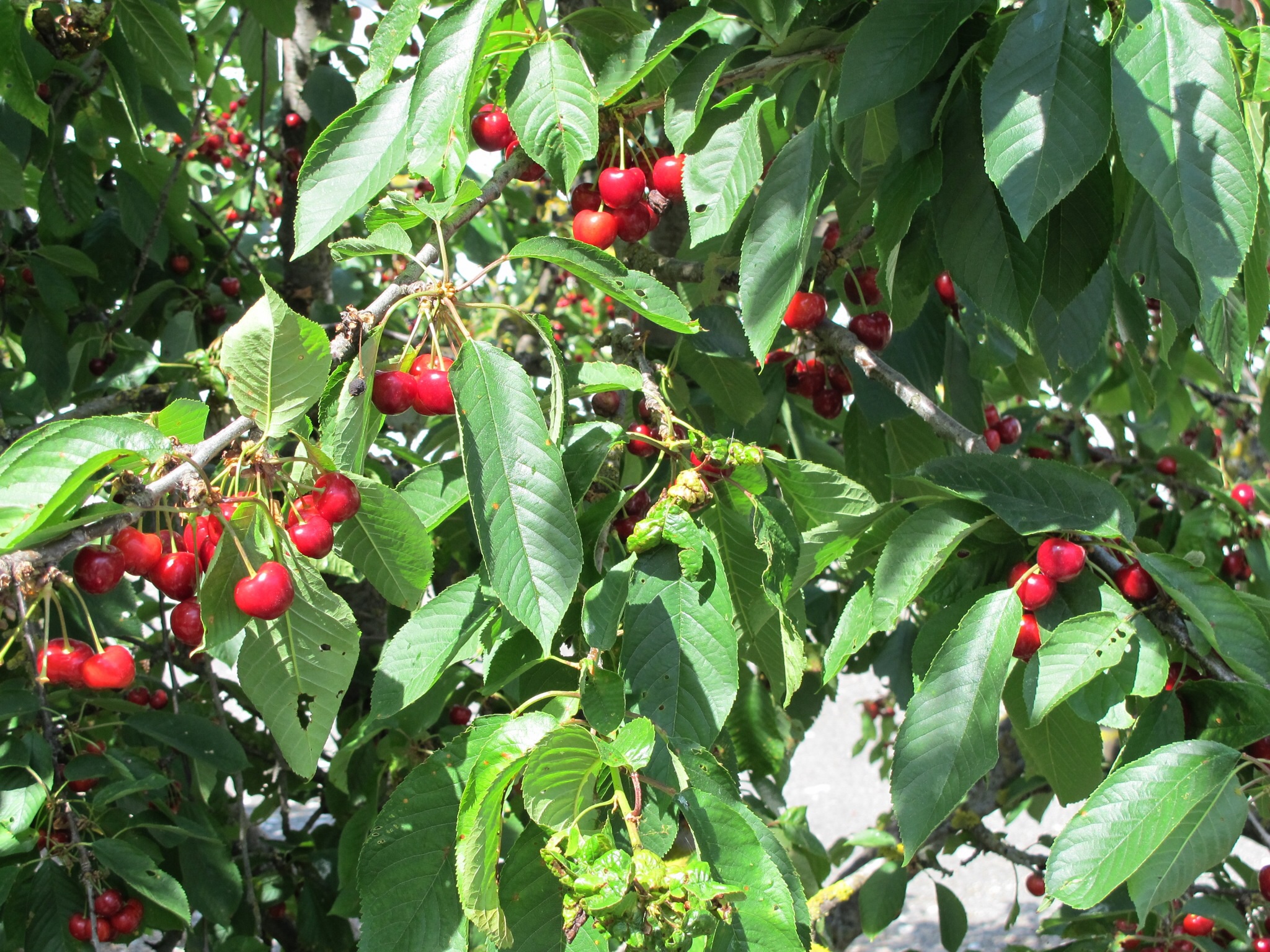 We were lucky enough to stop for lunch in a town. On the outskirts there were two cherry trees but I couldn’t reach the branches to pick them so just took photos. It was laden. MR being the country girl that she is didn’t give up so easily. She hooked her pole into the branch and dragged it towards us. We grabbed handfuls and stowed them in a plastic bag. Within five minutes we had a kilo and decided that that was enough as we had to carry them. They were delicious!