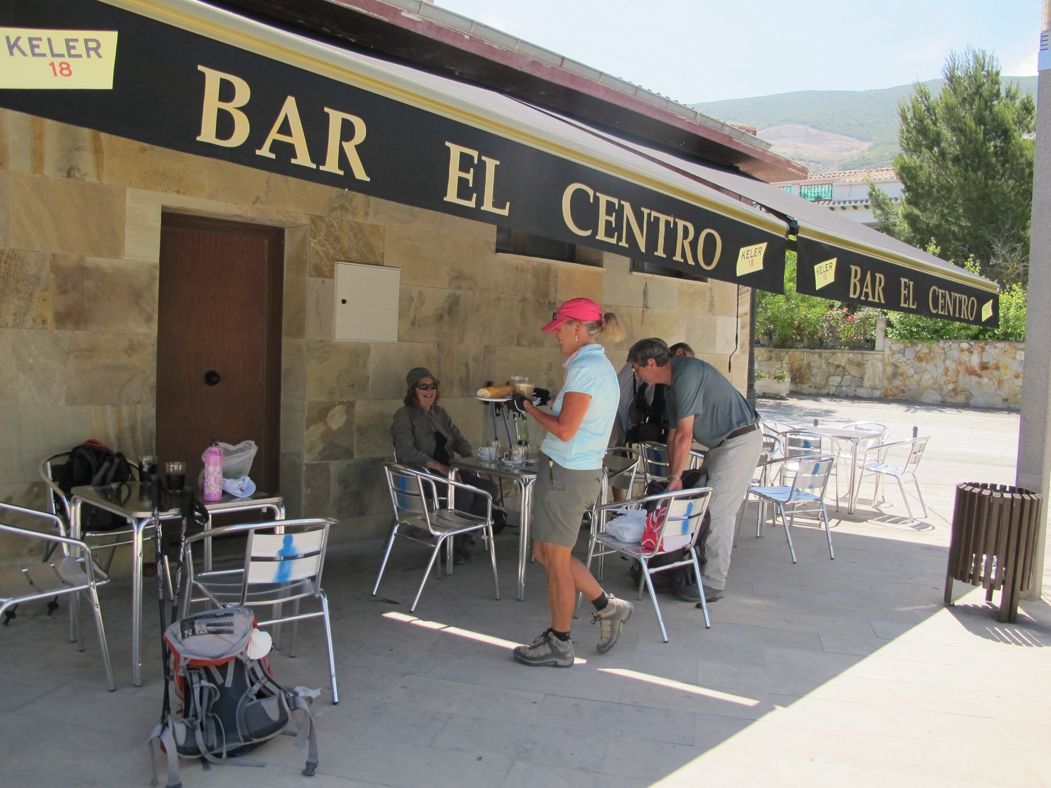 We found a cafe for lunch … internet … a bonus! The three French pilgrims I had dinner with the night before were there. They were shocked by the terrain as well. We ran into them several times during this last day and they looked more exhausted each time. I think that they had been on a two week walk and this was their last day as well.