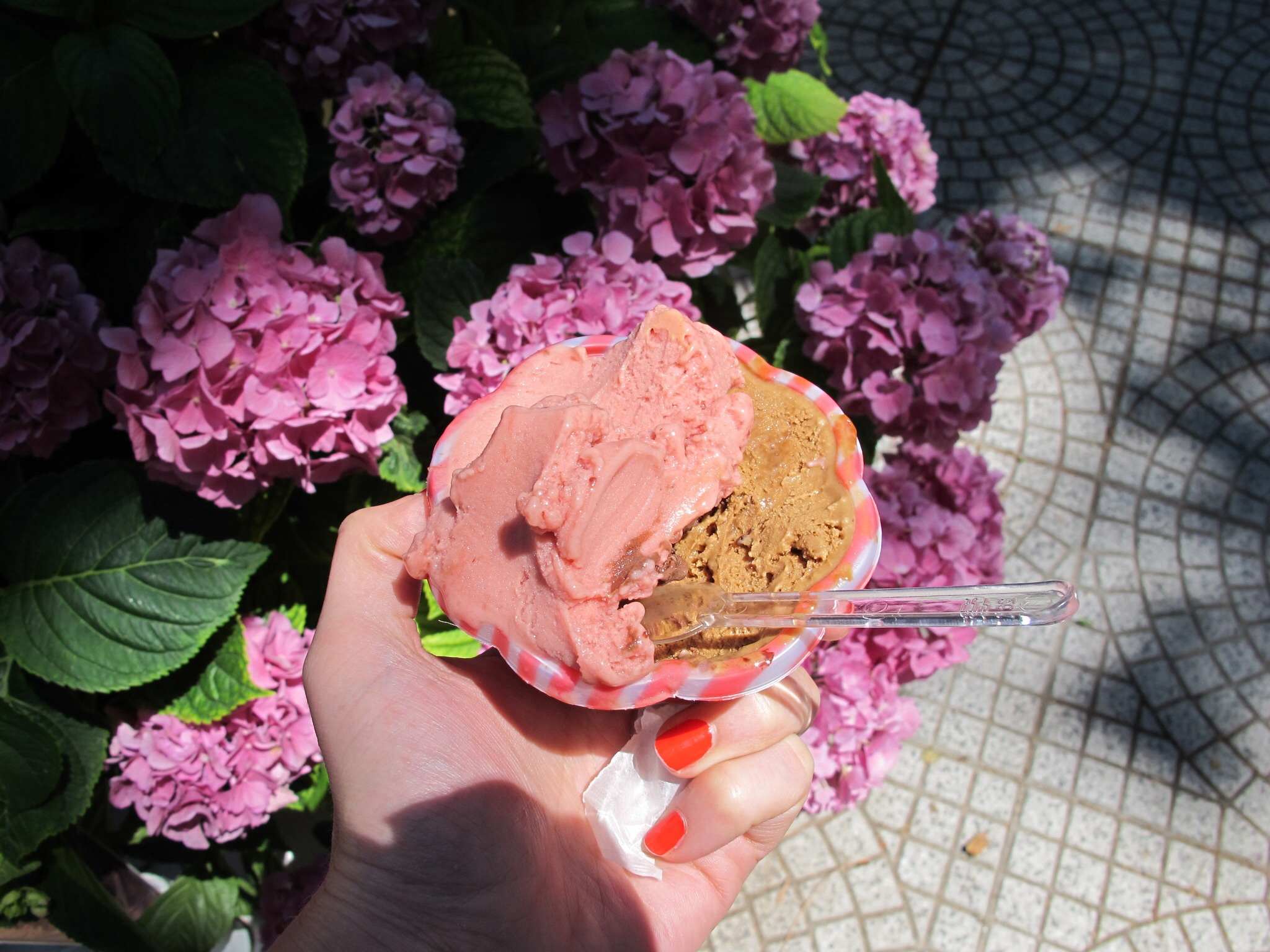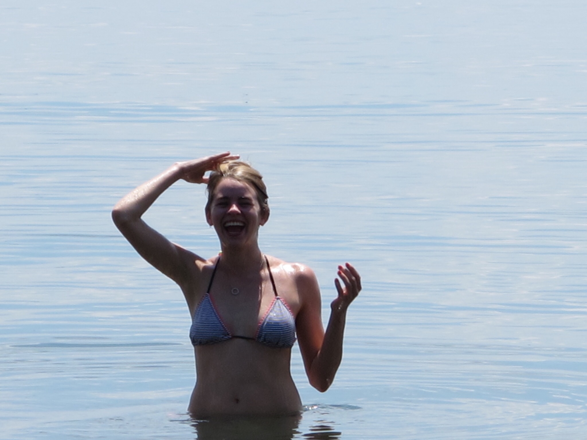 It was quite a hot day so we headed back to the lake for a swim and gelati.  John and Bea jumped straight in … again, but it took John offering Matilda 10 euro to get her in!  She did!