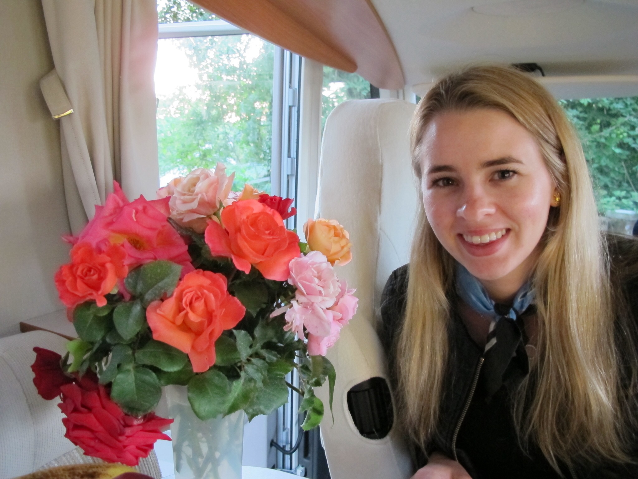 Till and I had picked a beautiful bunch of roses from the bushes at the end of the vineyards and it made the van smell beautiful.