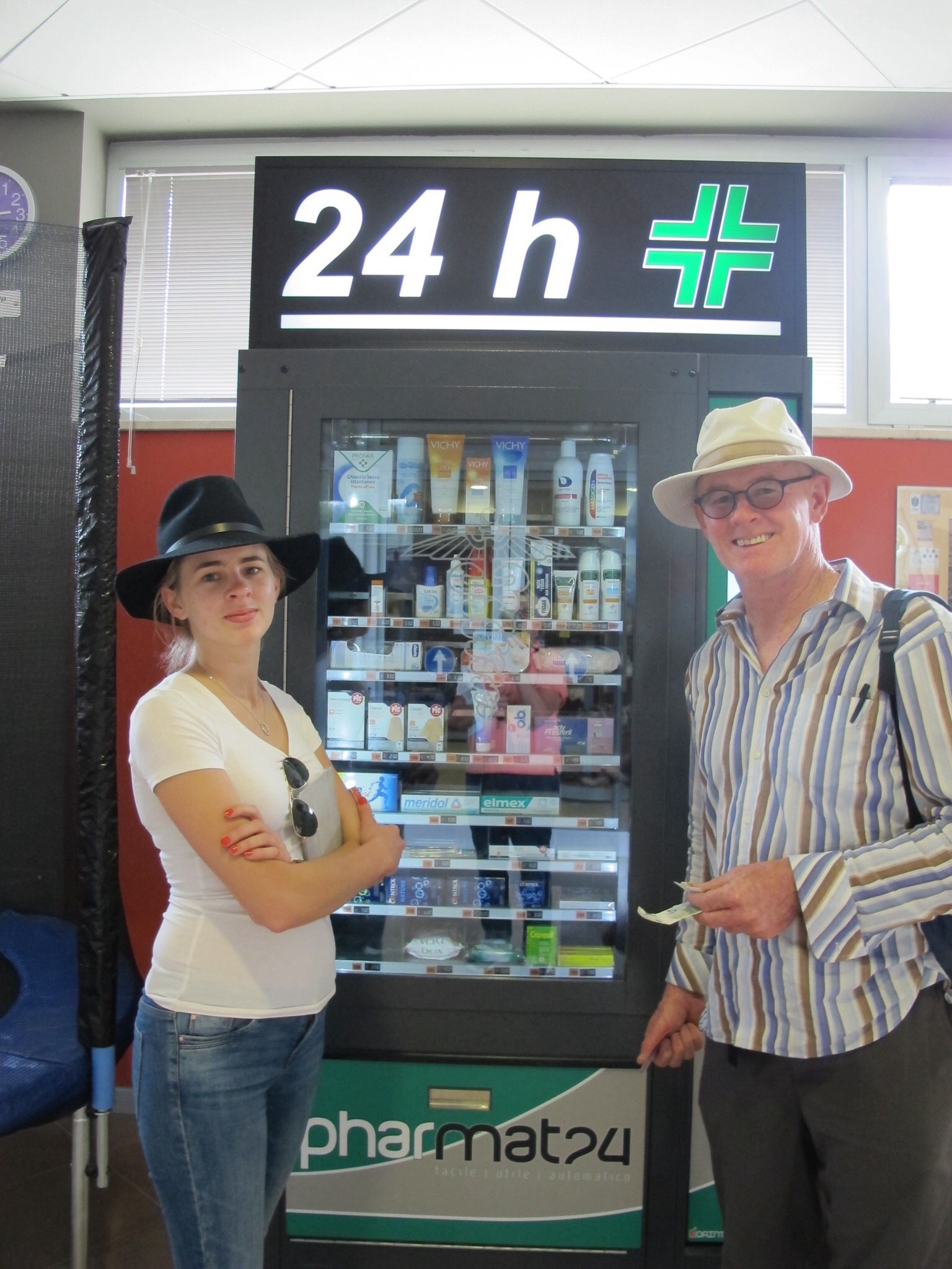 We spotted this rather spoilt dog on our trek back to the van. Then of interest to Terry Stone … this pharmacy vending machine in the car park.