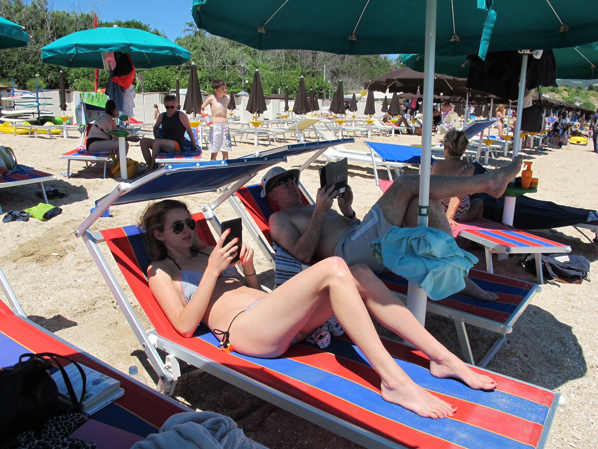 We spent most of the next day lying on these very comfy sunbeds. John was enjoying the sunshine … is that an ipad in his hand? No!?!?!?!? (It is never out of his hand!)