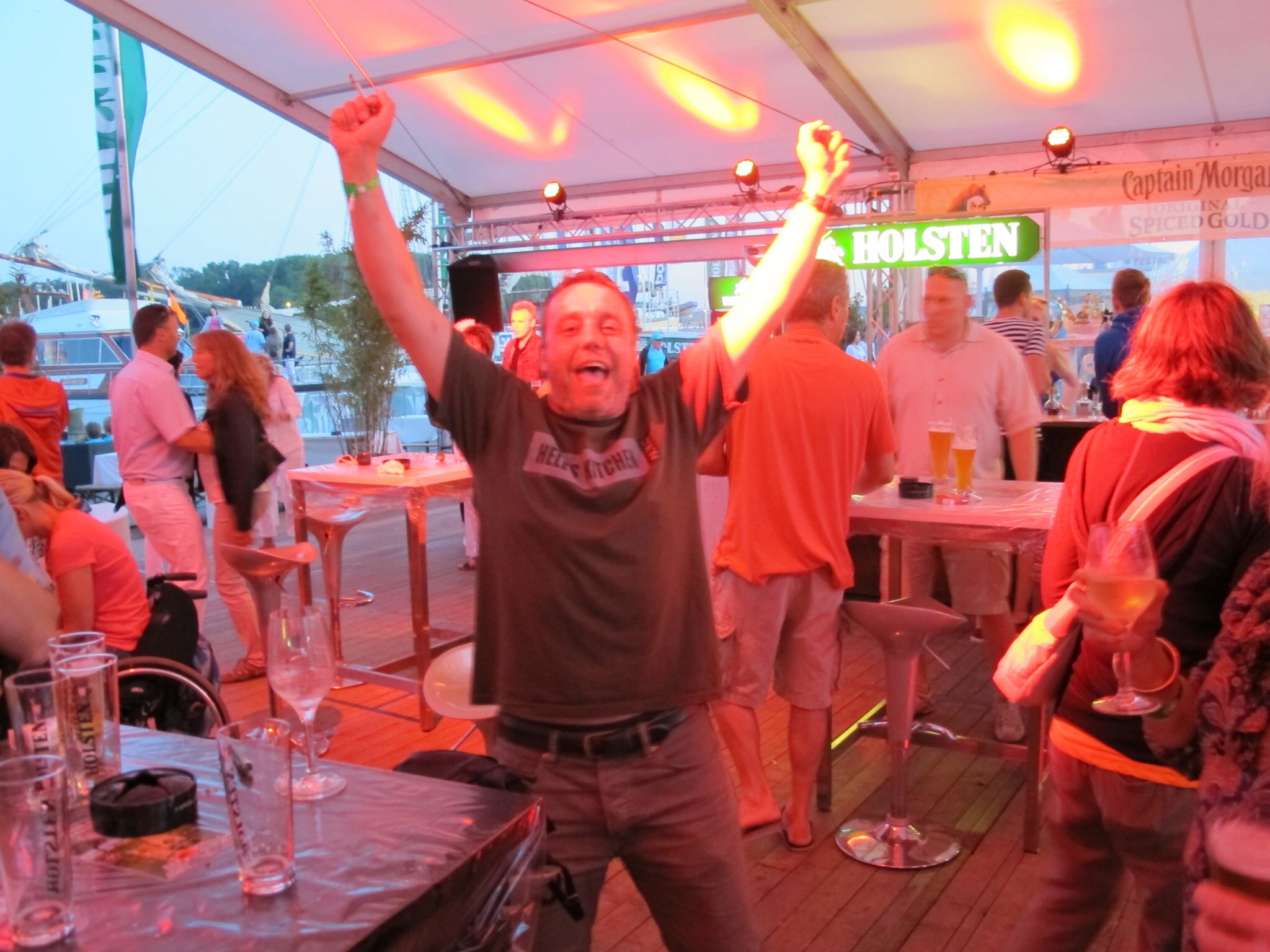 First photo … all of the sailors. Second photo …Luca, John and Chris, Third photo Gilbert (German), Chris (Pom) and Dena. Fourth photo … Chris and Dena cutting up the rug. Fifth photo …Sebastian (German) having a great time … lovely guy. Sixth photo Dena and Chris really getting into it. Seventh photo Sebastian, John and I.