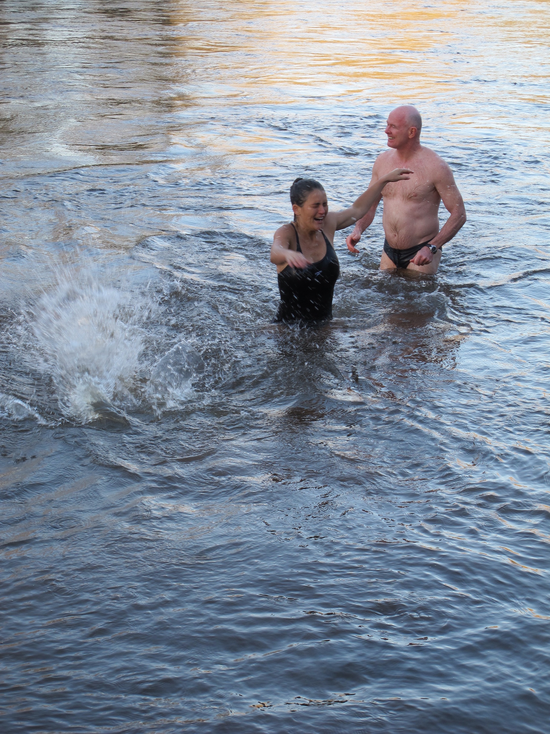 There had been a lot of talk about having a swim so Sarah, Joe and John took their togs and had nearly been put off because it was just so cold …