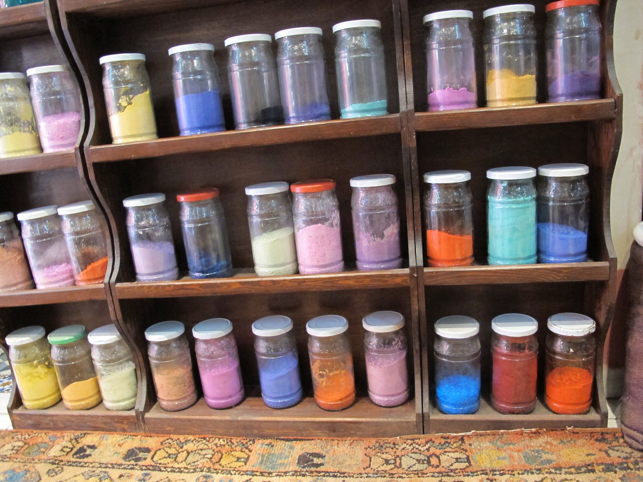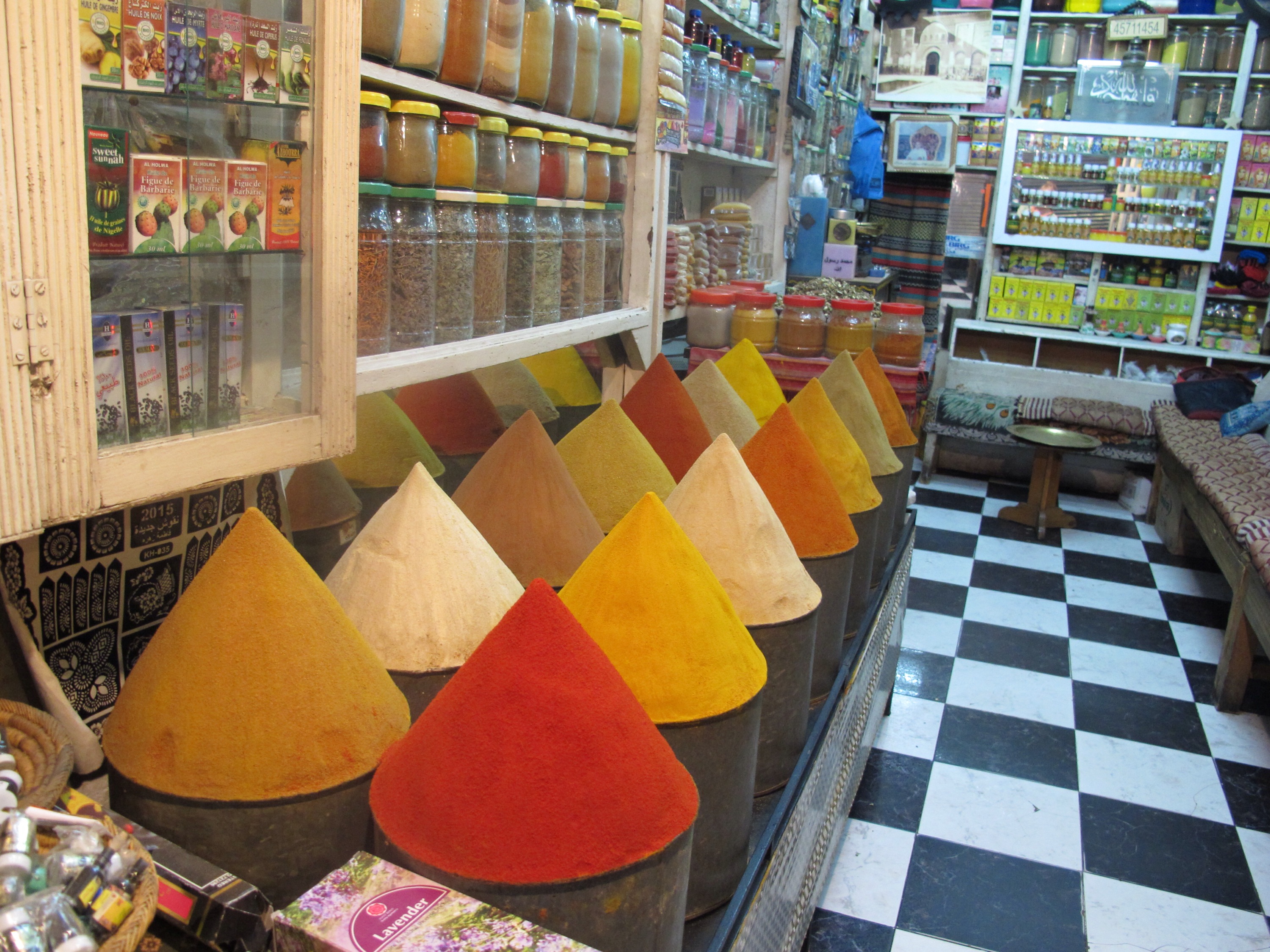 The next day once again we took it easy and opted for our free hammam and scrub …. we gave it a three … out of ten. Ha! Just enough to make our skin crawl from dryness. We headed into the souks on the 3 pm shuttle and our first stop was lunch up in one of the rooftop restaurants in the souks. It was by far the best meal that I have had so far in Morocco and cost $15. We got trapped talking to one of the guys in an apothecary but as it turned out it he was quite interesting and I loved the photos I took there. John had a shoulder massage that was useless. While he was doing that I went out and bought a pair of baboushes to wear as slippers … rather groovy but I am sure they will fall apart in five minutes.
