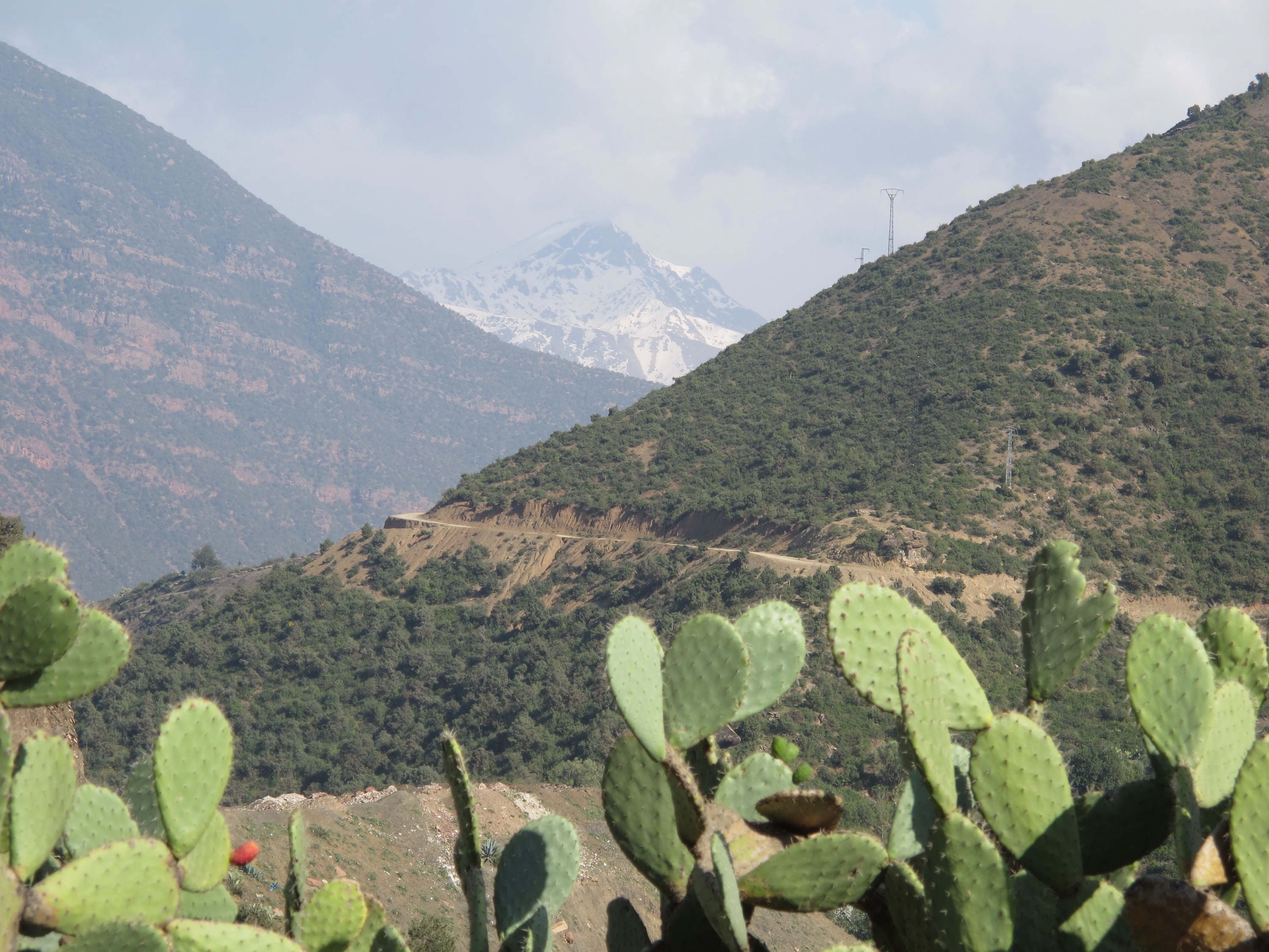 The next morning we had breakfast … with cats annoying us … and headed up into the mountains to the High Atlas ski area. We picked up a little boy … about 10, hitchhiking. He was on his way up the mountain with a plastic bag full of herbs to try and sell. He was really rather sweet … compared to the other rather ordinary little boys that were up there hassling us. The area around the ski resort was disgusting. Rubbish everywhere … and people just sitting around in the middle of it picnicking. Unbelievable. The last country we were in where the residence treated their beautiful natural areas so badly was Bosnia. I will let you figure out the connection. It was such a shame as it was really very beautiful.