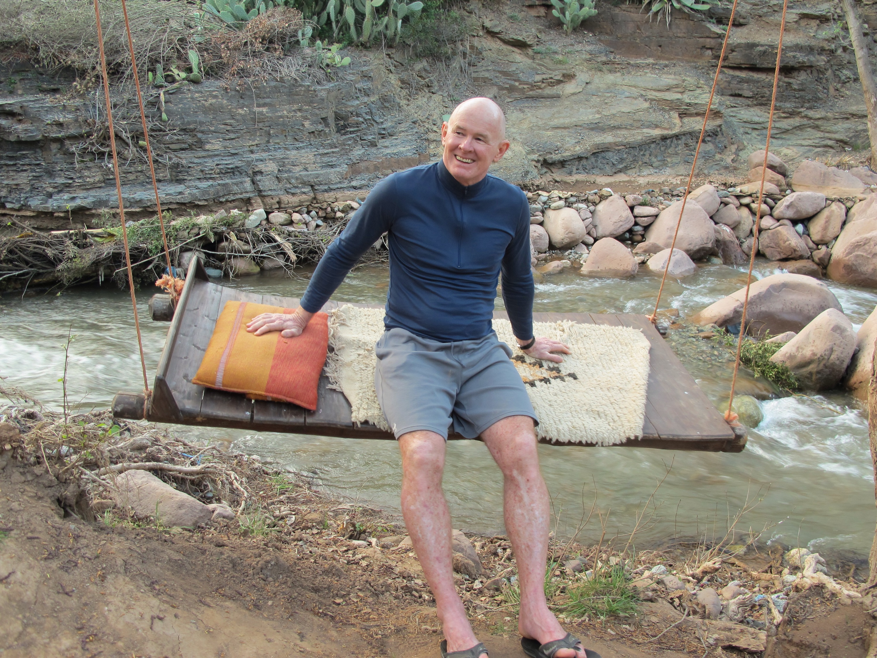 We rocked up at this hotel that we had made a tentative booking at. One of the Irish girls told us that it was a yoga retreat so we decided to give it a go. It looked pretty dodgy to me straight away but John felt embarrassed that we had booked it so we decided to stay. So we threw our things into the room, donned our joggers and headed off into the hills. It was the first hill walking that we had done for a very long time and apart from a pulled hamstring I pulled up ok … although it was only 1.5 hours. We walked through very small Berber villages and for the most part we were with little children who were taking supplies back to their houses … a small gas bottle and not sure what else. It would have been at least an hour trek for them each way, if not further. They were really sweet and we handed out roasted almonds and dried apricots which they were very happy about.