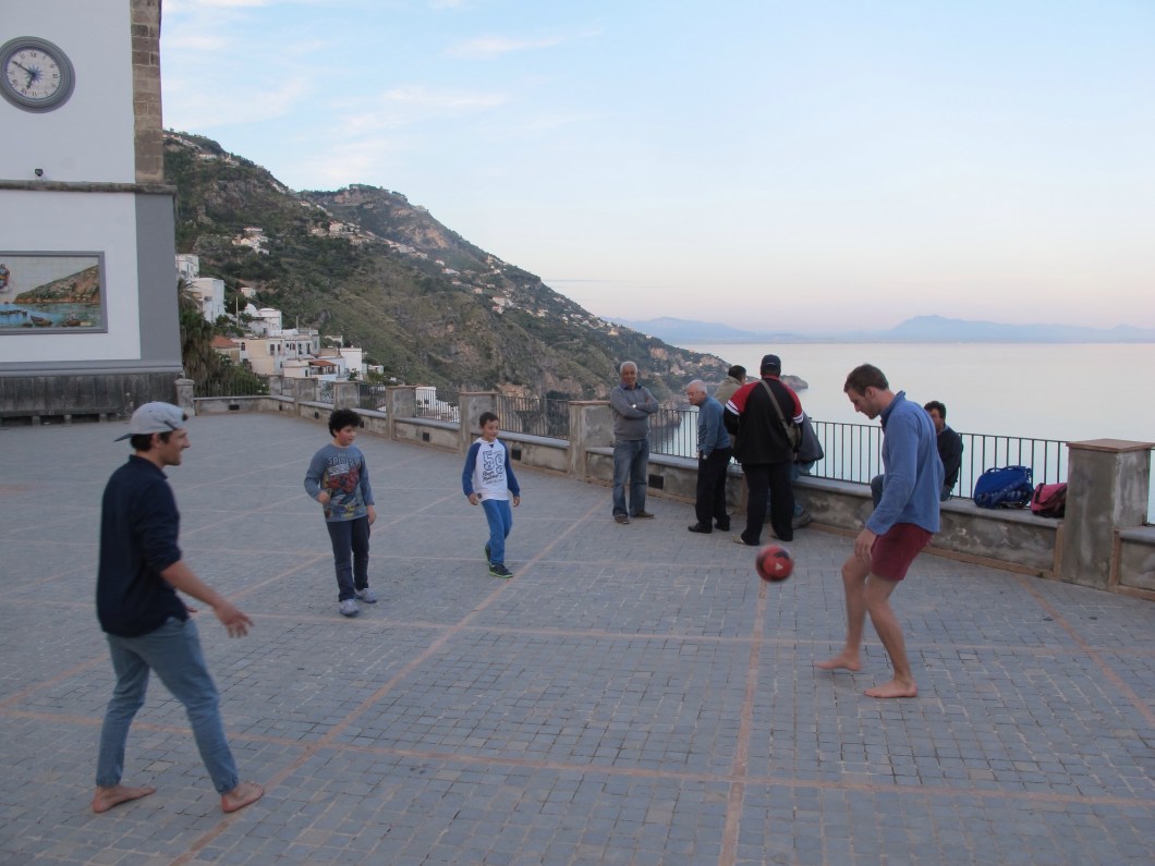 After our perfect day out we headed home and then further up the hill to have a look at the lovely church and square. Charlotte had been up there several times just looking out and reading her book. We all descended on her and had a lovely hour on dusk listening to the hymns from the church and watching Jacko and Hooz playing soccer with a couple of local kids.