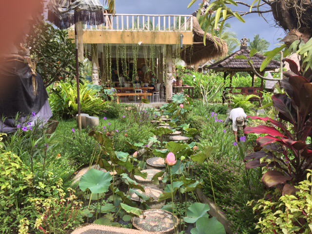 We have just had two nights in Meruh Dani Hotel/Guest House in Ubud which is spotlessly clean, great pool, great gardens, beautiful Balinese family running it and very close to the main street … about 100 m. It has been perfect and all for the very reasonable price of $59 per night with a fab breakfast included. We did lots of walking in the very busy town but apart from the 7 km walk in the paddi fields we laid pretty low and relaxed. Easy to do in Bali! John did manage a restorative yoga class that he said wasn’t that great.
